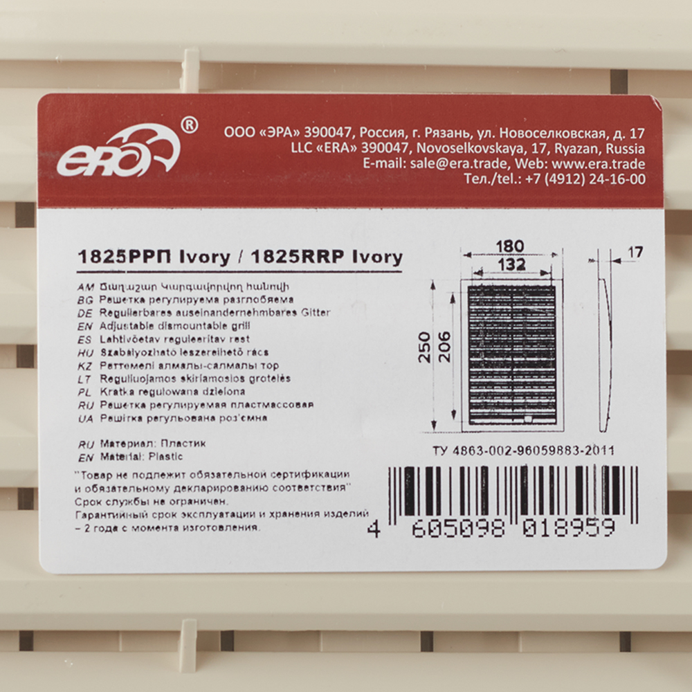 Предназначена для приточно-вытяжных систем вентиляции, систем кондиционирования и воздушного отопления. Регулировка живого сечения осуществляется при помощи флажка. Изготавливаются из высококачественного пластика цвета Ivory.rnБлагодаря съёмной лицевой части, изделие позволяет без демонтажа всей конструкции производить ревизионный осмотр и очистку вентиляционного отверстия.