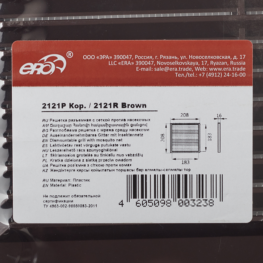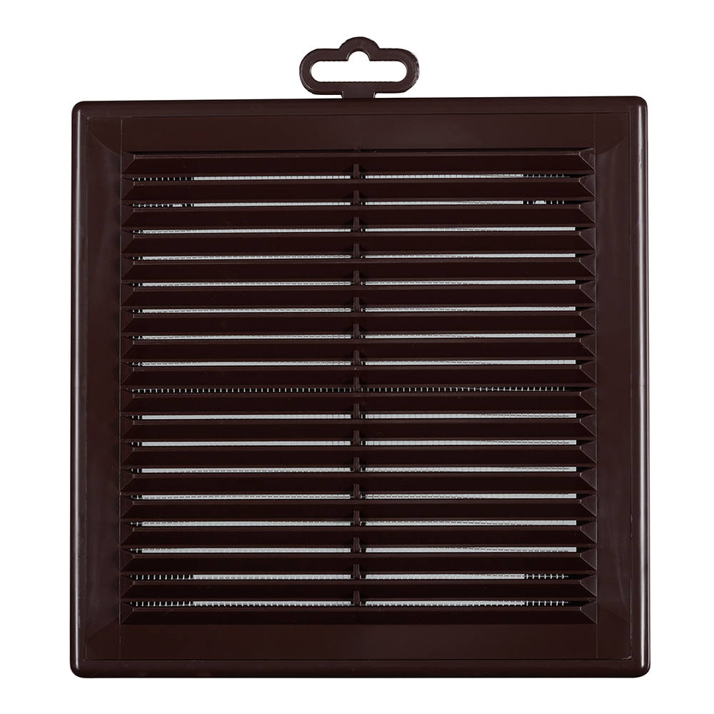 Решетка вентиляционная пластиковая приточно-вытяжная ERA 208х208 мм с сеткой коричневая