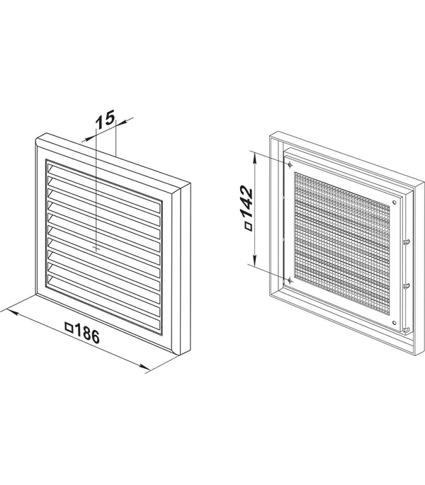 Предназначена для подачи или удаления воздуха в приточно-вытяжных системах вентиляции. Применяется для настенного или потолочного монтажа. Имеет защитную сетку от насекомых. Решетка состоит из двух частей.