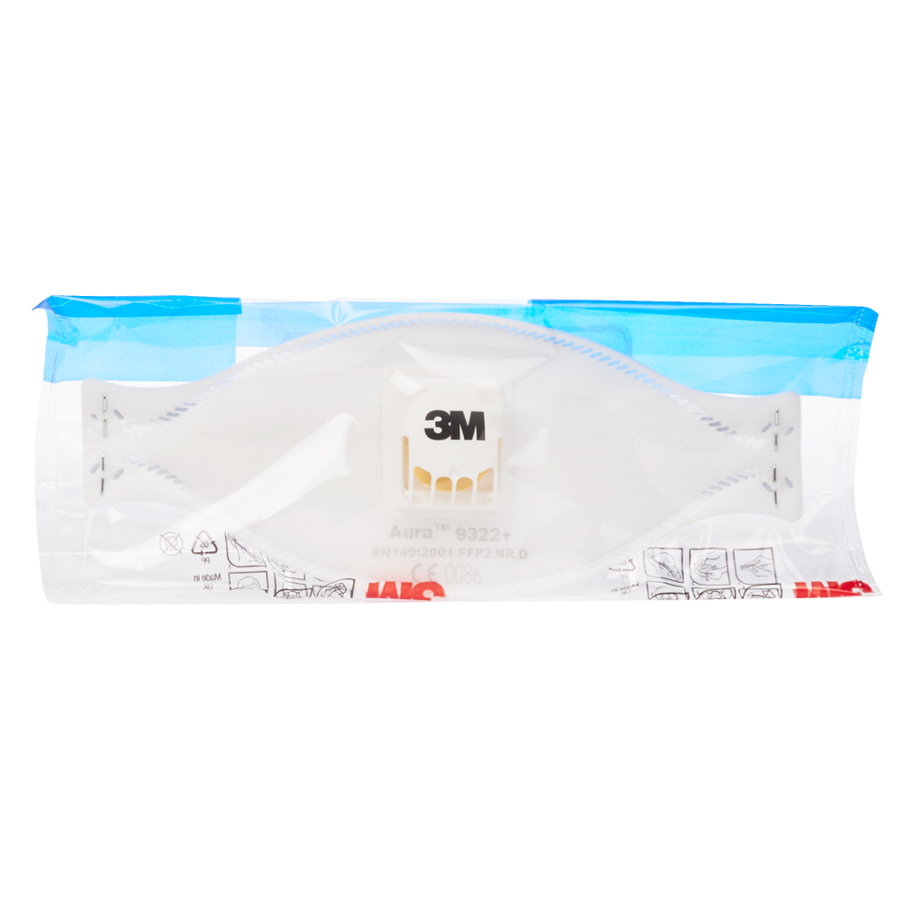 Противоаэрозольная фильтрующая полумаска 3M Aura модель 9322+ класс защиты FFP2 (до 12 ПДК), складного типа, 3-х панельной конструкции, с низким сопротивлением дыханию и рельефной верхней панелью, которая помогает уменьшить запотевание очков. Оснащена инновационным язычком для надевания и легкой регулировки, имеют цветовую маркировку оголовья для быстрой и легкой идентификации степени защиты. Клапан выдоха 3M Cool Flow эффективно отводит образующееся тепло, выдыхаемый воздух и влагу.rnФильтрующая полумаска 3M Aura модели 9322+ обеспечивает высокоэффективную защиту органов дыхания против аэрозолей различной природы. Специальный 3-х панельный дизайн поможет легко и удобно надеть респиратор практически на любое лицо, а также позволит респиратору не смещаться при движениях во время ношения. Кроме того, такие элементы конструкции, как рельефная верхняя панель, язычок для надевания респиратора, фигурная вырубка верхней панели для лучшей совместимости с очками, – делают эту серию респираторов еще более удобной в различных условиях труда – и при высоких концентрациях, и при высокой физической нагрузке, и при работе с особо вредными аэрозолями. Применяется специальный высокотехнологичный фильтрующий материал с высоким качеством фильтрации и низким сопротивлением дыханию. Клапан выдоха 3M Cool Flow обеспечивает комфортное и легкое дыхание в условиях повышенных температур и влажности, эффективно отводя образующееся тепло, влагу и выдыхаемый воздух вниз от лица. Окрашенное оголовье помогает легко определить степень защиты: синий для FFP2 (до 12 ПДК). Респираторы серии 3M Aura является складными и гигиенично упакованы в индивидуальную упаковку, что позволяет удобно и безопасно хранить их до начала использования.