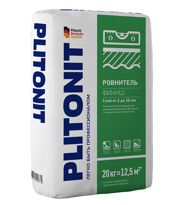 Ровнитель (наливной пол) финишный Plitonit Финиш самовыравнивающийся быстротвердеющий 20 кг