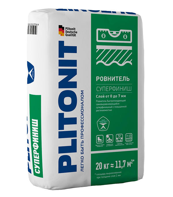 Ровнитель (наливной пол) финишный Plitonit Суперфиниш самовыравнивающийся быстротвердеющий 20 кг