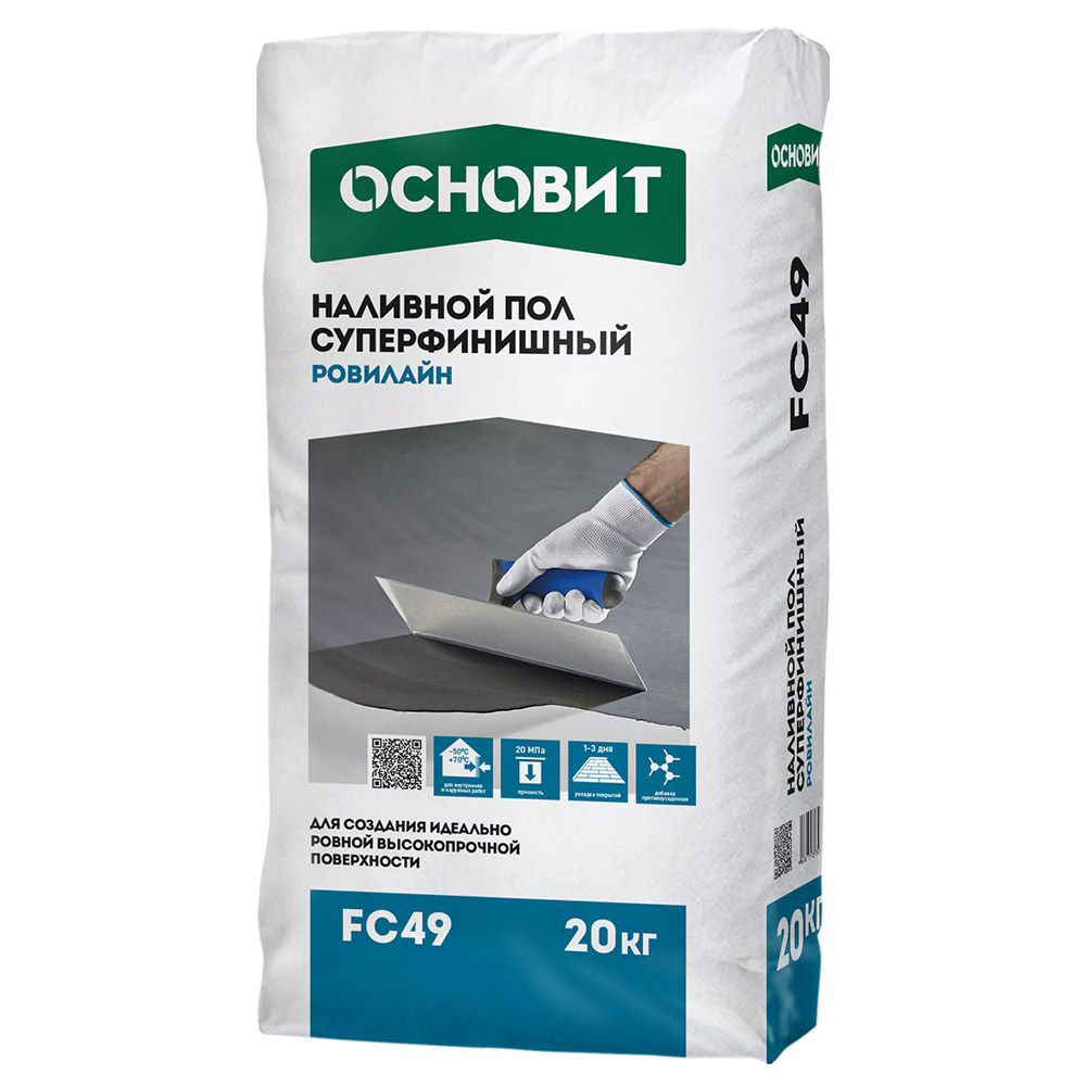 Наливной пол Основит Ровилайн FC49 предназначен для окончательного выравнивания оснований слоем от 0 до 5 мм в жилых и офисных помещениях.rnОсновит Ровилайн FC49 может применяться в качестве основания под укладку паркета, ковролина, линолеума, ламината, керамической плитки и других напольных покрытий. Для ручного и механизированного нанесения. Для внутренних работ и наружных работ. Не эксплуатировать без покрытия.