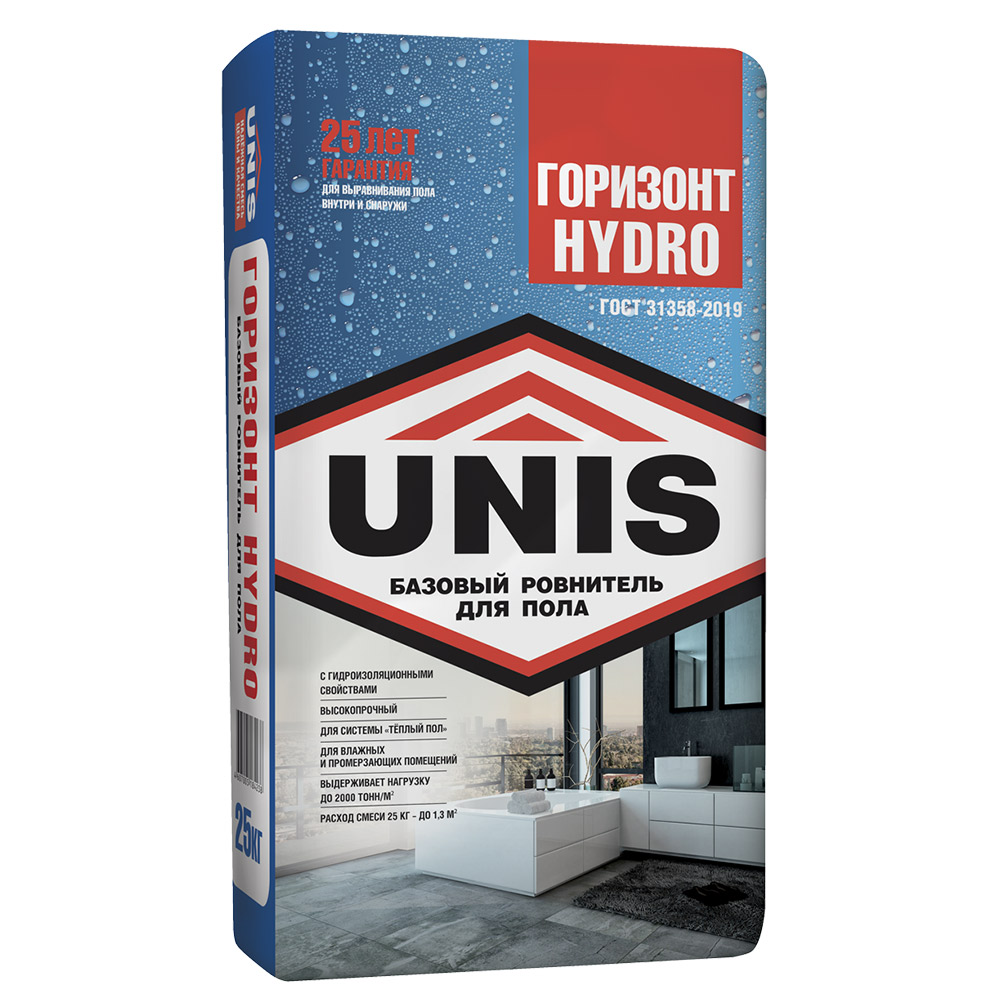 Основание должно быть сухим и обладать прочностью не ниже прочности ровнителя для пола. Перед нанесением материала необходимо удалить с поверхности осыпающиеся элементы, малярные покрытия, масляные, битумные пятна и другие загрязнения, препятствующие сцеплению материала с поверхностью. Для усиления прочности сцепления материала с основанием необходимо обработать поверхность грунтом UNIS в один-два слоя. Выбор грунта UNIS осуществляется в соответствии с типом основания. Не следует допускать запыления загрунтованных поверхностей. Выбоины, трещины глубиной более 10 см за 3-7 суток до начала проведения основных работ тщательно заделываются стяжкой «Горизонт HYDRO». Перед нанесением раствора на вертикальные поверхности по периметру помещения укладывается кромочная лента для наливных полов. Ширина ленты выбирается в зависимости от предполагаемой толщины выравнивающего слоя.