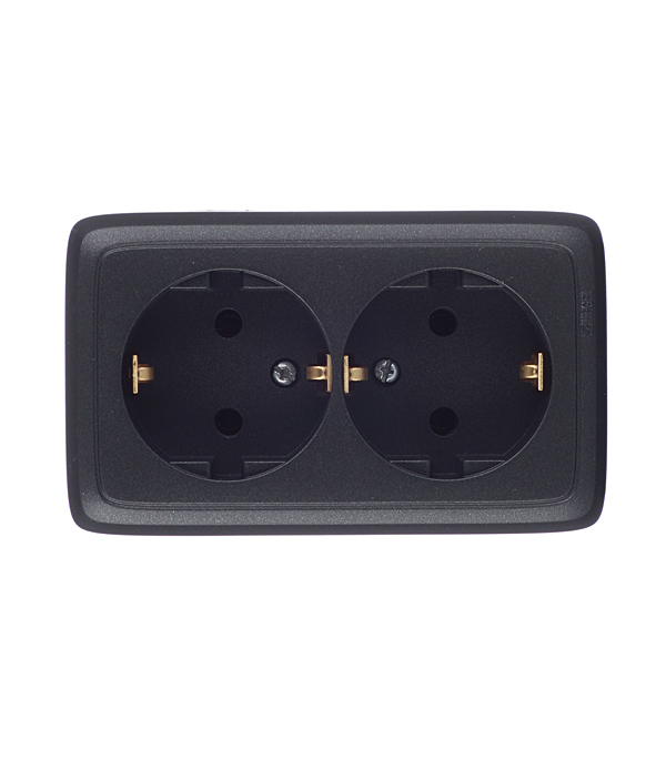 Розетка HEGEL Alfa двойная РА16-153-08 открытая установка черная с заземлением с изолирующей пластиной