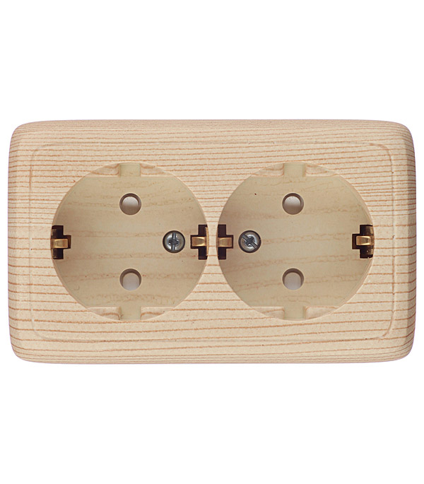 Розетка HEGEL Alfa двойная РА16-154-02 открытая установка сосна с заземлением со шторками