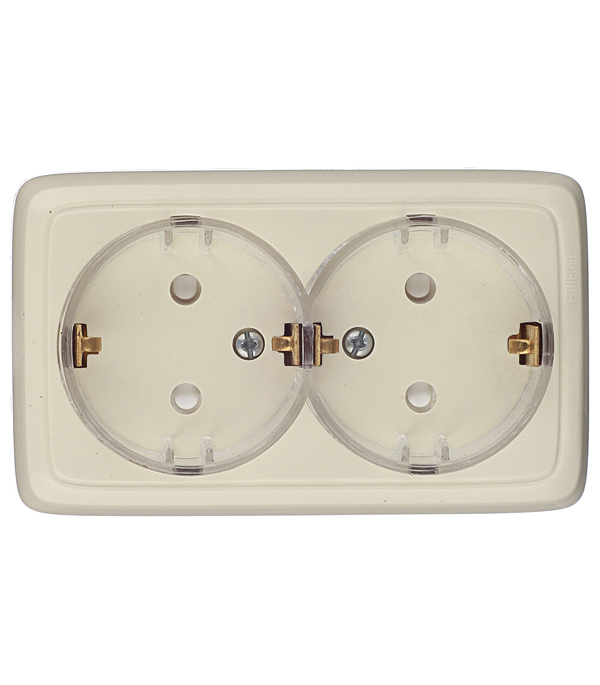 Розетка HEGEL Alfa двойная РА16-184-01 открытая установка слоновая кость с заземлением тонкая со шторками