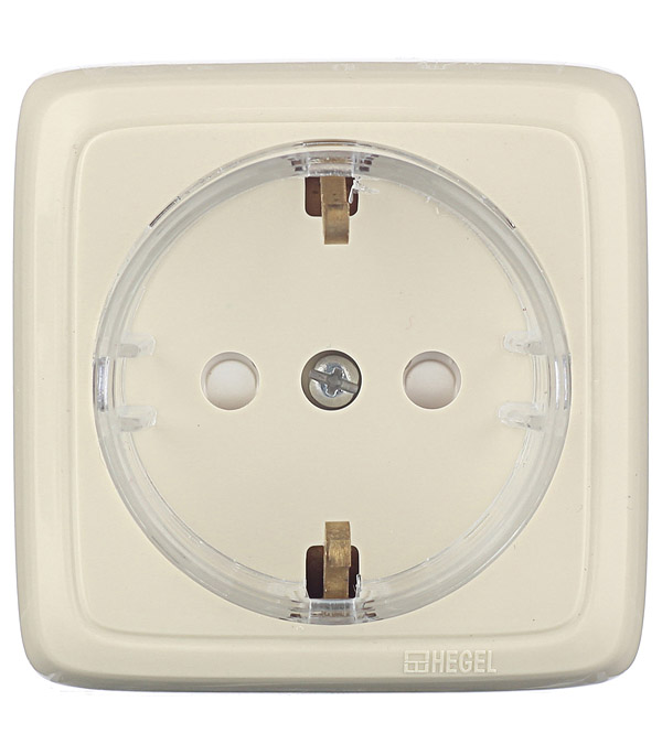 Розетка HEGEL Alfa РА16-174-01 открытая установка слоновая кость с заземлением тонкая со шторками