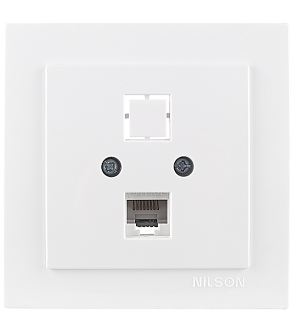 Розетка компьютерная с рамкой Nilson TOURAN 24111644 скрытая установка белая один модуль RJ45 cat 5