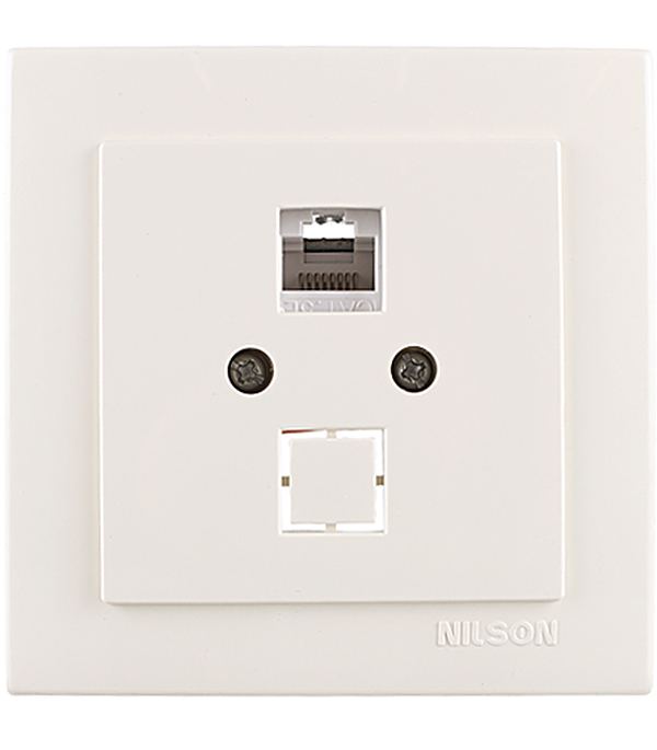 Розетка компьютерная с рамкой Nilson TOURAN 24121644 скрытая установка бежевая один модуль RJ45 cat 5