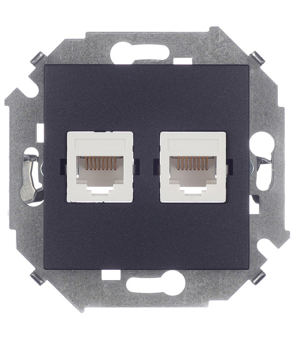 Розетка компьютерная Simon 15 1591593-038 скрытая установка графит два модуля RJ45 cat 5e
