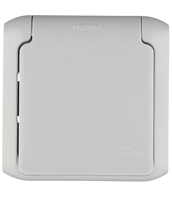 Розетка Legrand Quteo 782351 открытая установка серая с заземлением IP44 с крышкой влагозащищенная со шторками