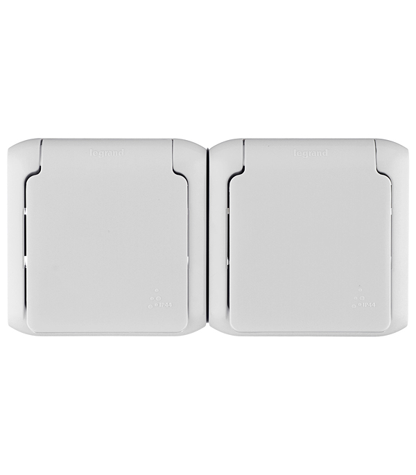 Розетка Legrand Quteo 782353 двойная открытая установка серая с заземлением IP44 с крышкой влагозащищенная со шторками