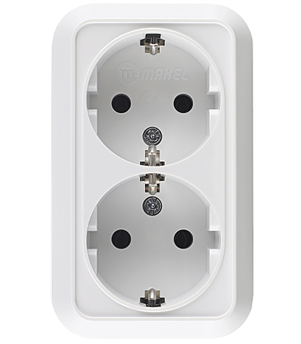Розетка Makel Siva Ustu 45182 двойная открытая установка белая с заземлением