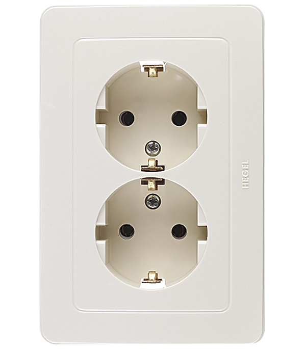 Розетка с рамкой HEGEL Master РС16-351-01 двойная скрытая установка слоновая кость с заземлением