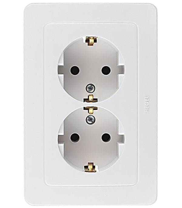 Розетка с рамкой HEGEL Master РС16-351 двойная скрытая установка белая с заземлением