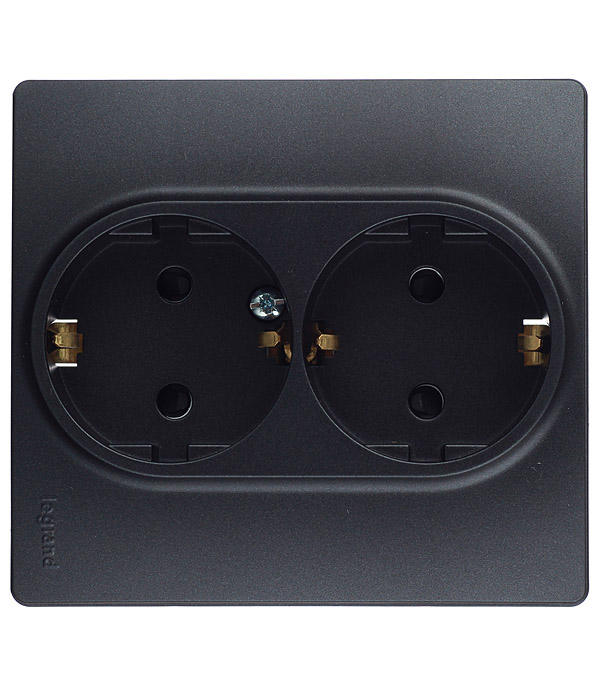 Розетка с рамкой Legrand Etika 672633 двойная скрытая установка антрацит с заземлением со шторками автоматический зажим