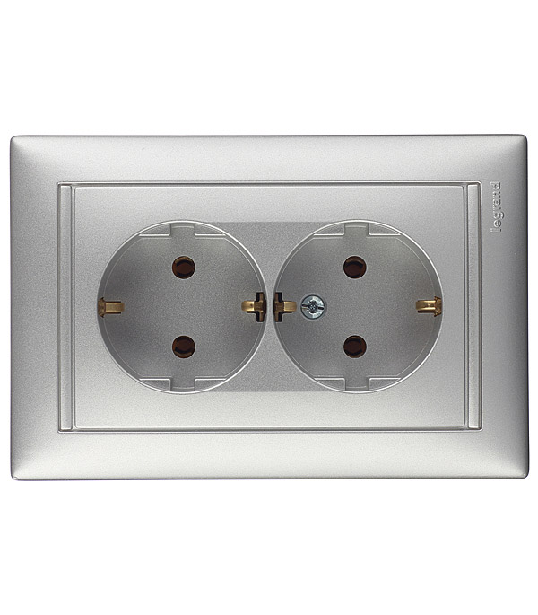 Розетка с рамкой Legrand Valena 694335 двойная скрытая установка алюминий с заземлением