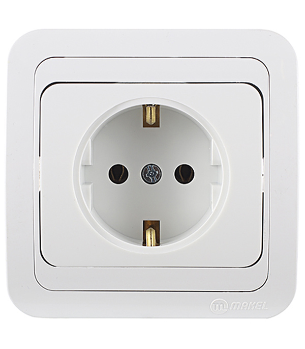 Розетка с рамкой Makel Mimoza 12008 скрытая установка белая с заземлением керамика