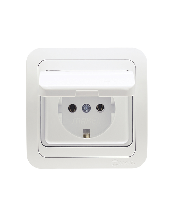 Розетка с рамкой Makel Mimoza 12029 скрытая установка белая с заземлением с крышкой