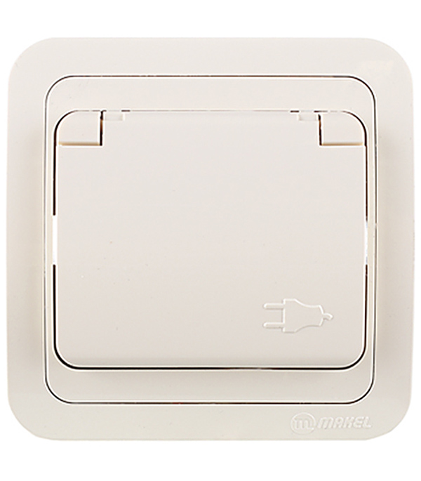 Розетка с рамкой Makel Mimoza 25029 скрытая установка бежевая с заземлением с крышкой