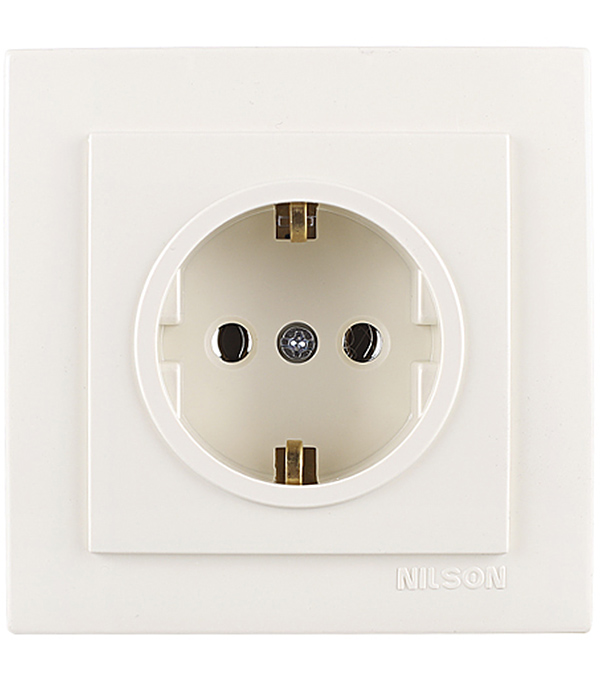 Розетка с рамкой Nilson TOURAN 24121617 скрытая установка бежевая с заземлением