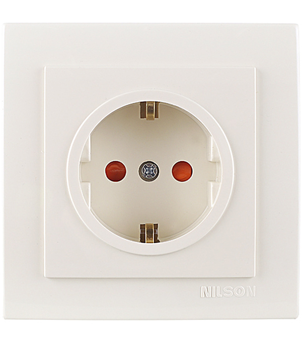 Розетка с рамкой Nilson TOURAN 24121619 скрытая установка бежевая с заземлением со шторками