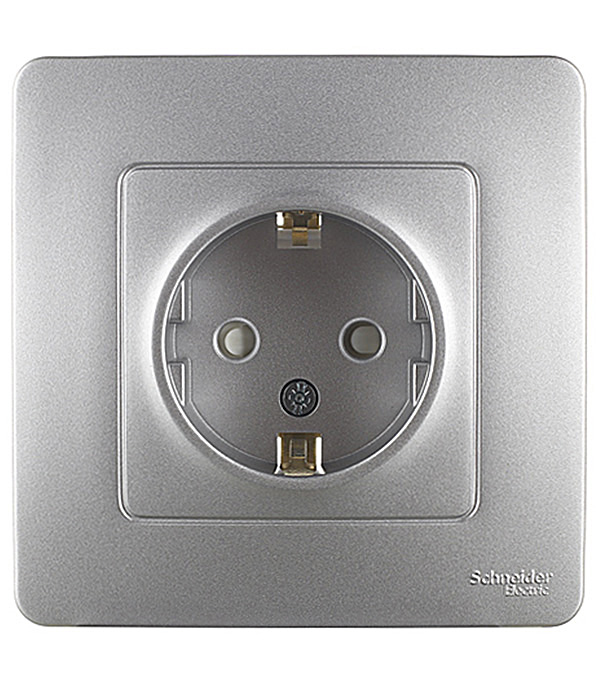 Розетка с рамкой Schneider Electric Blanca BLNRS001113 скрытая установка алюминий с заземлением со шторками