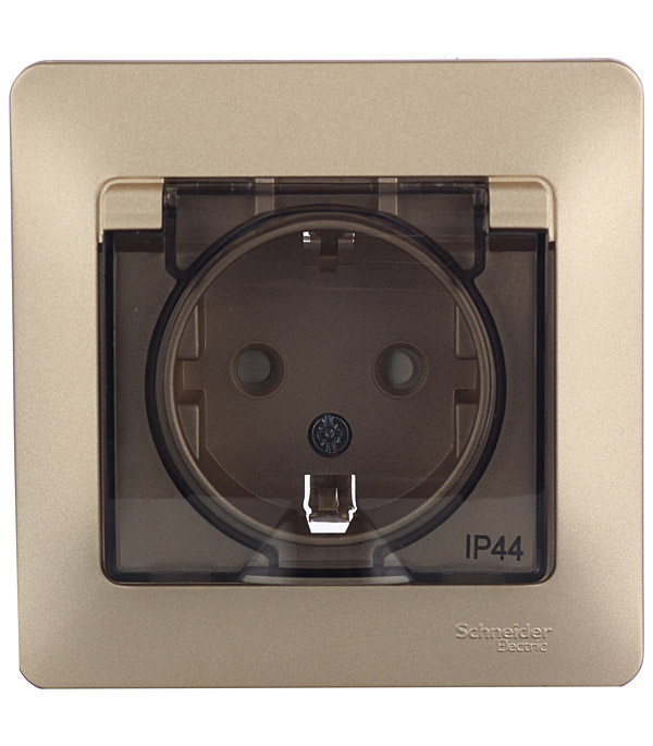 Розетка с рамкой Schneider Electric Glossa GSL000448 скрытая установка титан с заземлением IP44 со шторками с крышкой влагозащищенная