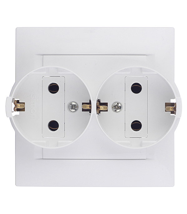 Розетка с рамкой Simon 15 1590459-030 двойная скрытая установка белая с заземлением