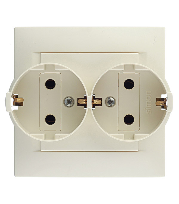 Розетка с рамкой Simon 15 1590459-031 двойная скрытая установка слоновая кость с заземлением