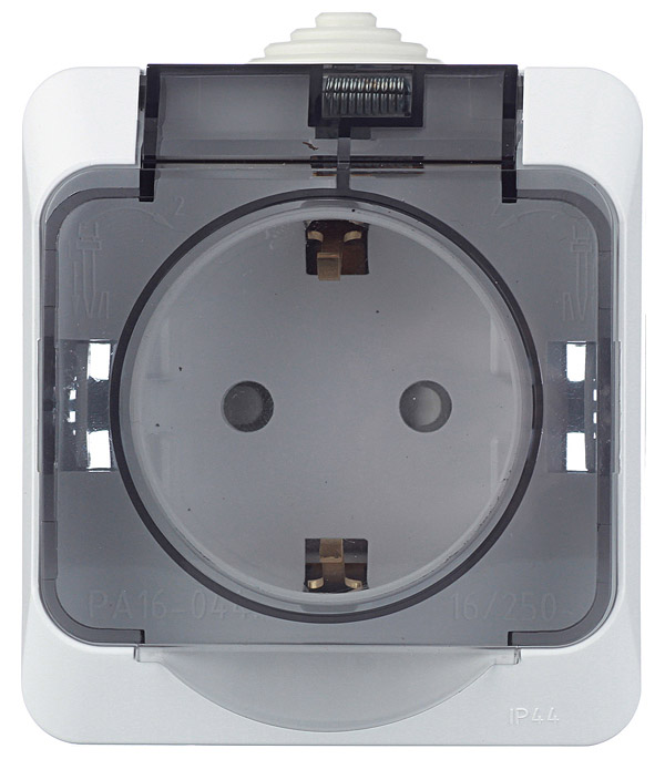 Розетка Schneider Electric Этюд PA16-044B открытая установка белая с заземлением IP44 с крышкой со шторками