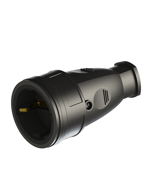 Розетка штепсельная каучуковая SVET с заземлением 1 фаза переносная 16 А 250 В IP20 черная