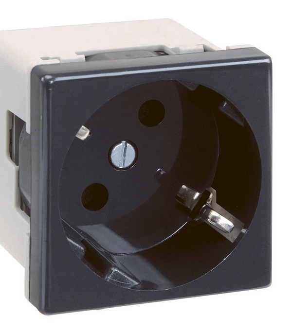 Предназначена для использования в устройствах серии Simon Connect. Розетка с винтовым подключением, заземляющим контактом, защитными шторками. Угол контактов – 45 гр.