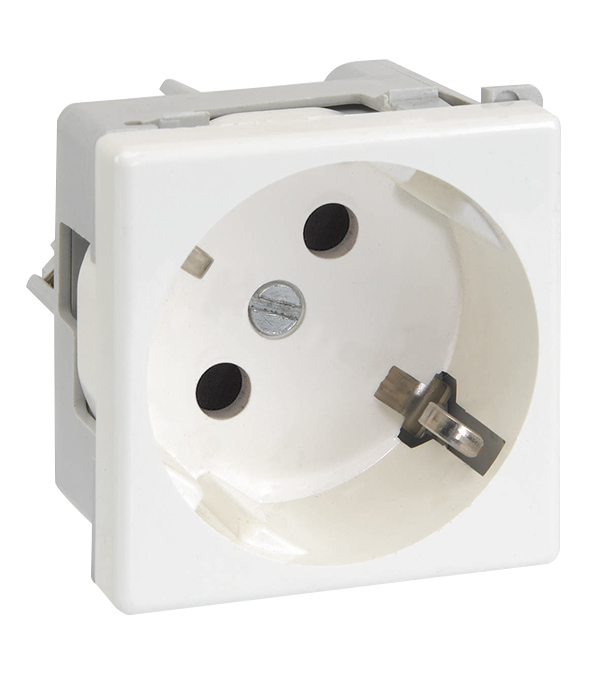 Предназначена для использования в устройствах серии Simon Connect. Розетка с винтовым подключением, заземляющим контактом, защитными шторками. Угол контактов – 45 гр.