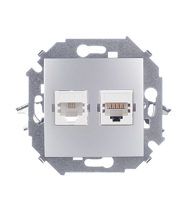 Розетка телефонная/компьютерная Simon 15 1591590-033 скрытая установка алюминий модули RJ11 и RJ45 cat 5е
