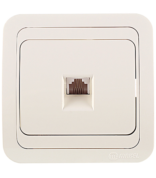 Розетка телефонная с рамкой Makel Mimoza 25014 скрытая установка бежевая один модуль RJ11