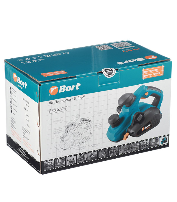 Хороший мощный рубанок вам понадобится, если вы строите дом или дачу с использованием деревянных заготовок. Сучки, неровности, искривления необходимо убрать и сделать поверхность красивой и ровной. Как раз с такой задачей отлично справится рубанок Bort BFB-850-T с литой стабильной подошвой. На подошве имеются пазы для снятия фаски. Плавная регулировка глубины обработки происходит с помощью регулировочной ручки, и, что важно, для строгания имеется дополнительная удобная рукоятка. Что бы не повредить поверхность на подошве рубанка имеется выдвигающийся башмак. Для удобства, есть возможность изменить направление выброса стружки и подключить строительный пылесос. В комплекте имеется параллельная направляющая для ровного строгания и ограничитель глубины выборки. Отдельно стоит отметить входящую в комплект станину, с помощью которой рубанок быстро превращается в строгальный станок, на котором можно обрабатывать бруски шириной до 82 мм.