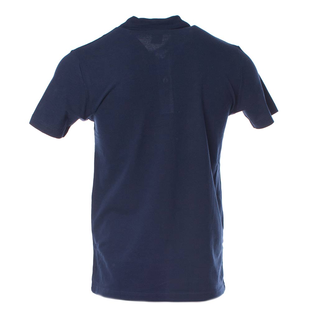 Рубашка поло прямого покроя, с коротким втачным рукавом, отложным воротником и планкой с застежкой из трех пуговиц в цвет полотна. Низ изделия с разрезами по бокам, подогнут и подшит плоским швом.