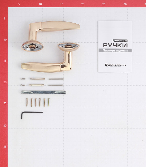 2 ручки, квадрат 8х105 мм, стяжки, крепеж, инструкция по установке, гарантийный талон.