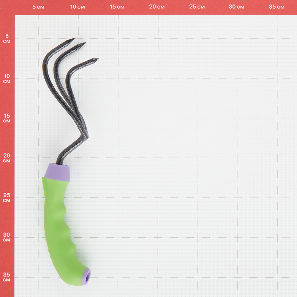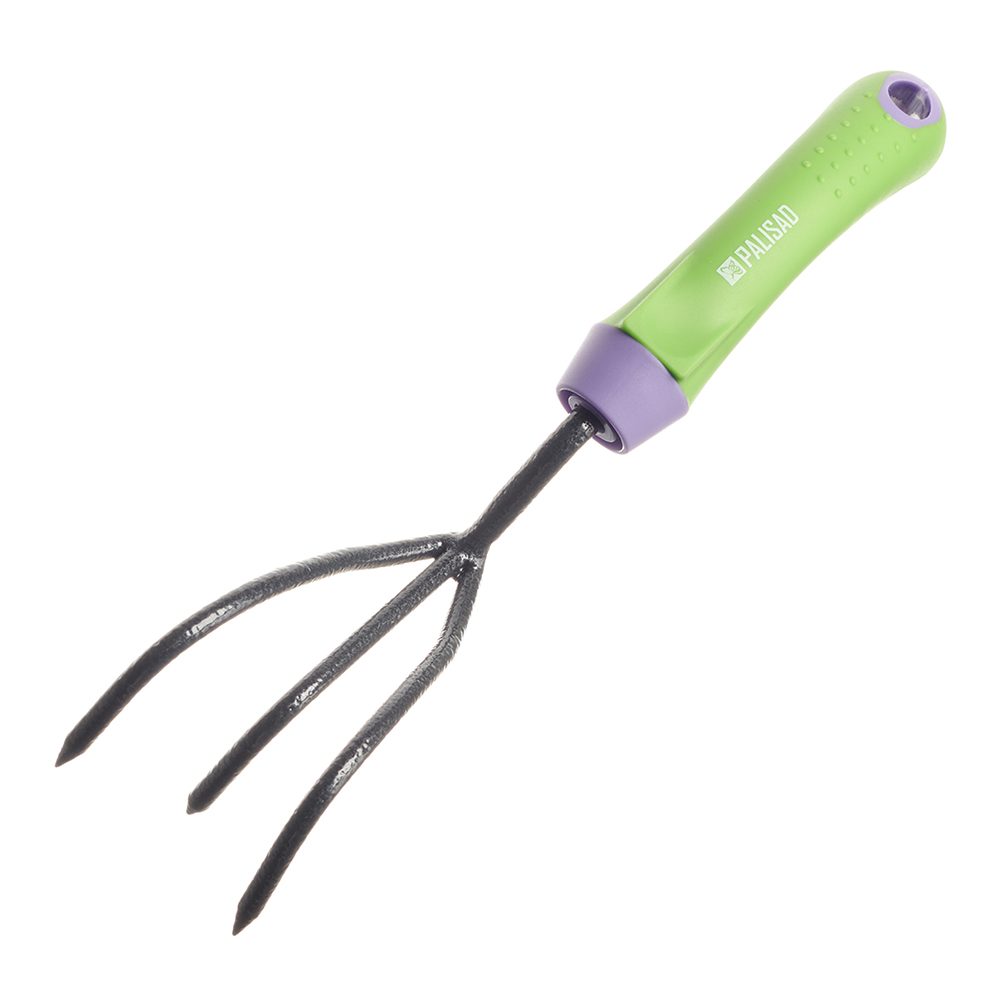 Рыхлитель 3-зубый с эргономичной обрезиненной рукояткой. Предназначена для рыхления и аэрации почвы на небольших грядках и клумбах.rnРабочая часть выполнена из инструментальной стали У8 и окрашена молотковойэмалью для предохранения от коррозии.rnДвухкомпонентная рукоятка эргономичной формы позволяет работать максимально комфортно.rnПо окончании работы необходимо очистить рабочую часть рыхлителя сухой салфеткой.