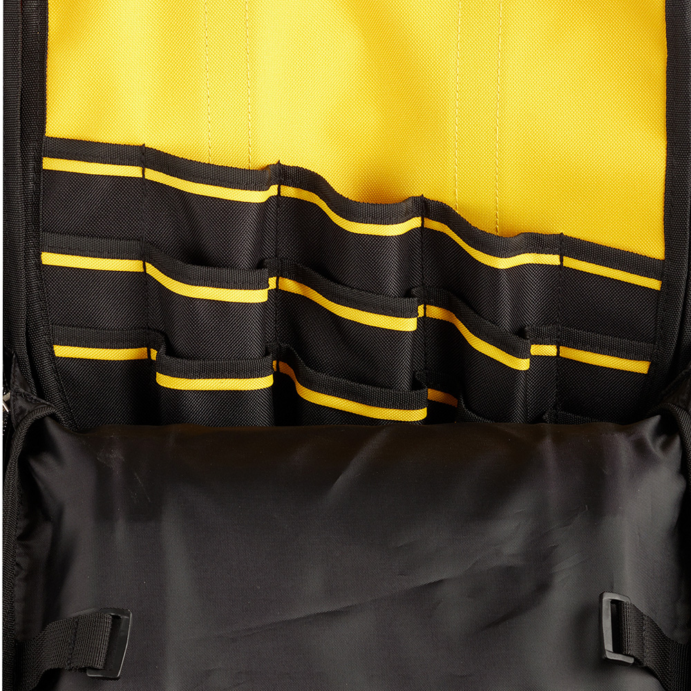 Предназначен для хранения и транспортировки инструмента. Имеет 50 карманов и держателей для хранения разнообразного инструмента, на лямках расположены мягкие наплечные накладки. Система разделителей с держателями инструмента легко снимается и имеет ручку для удобства переноски. Пластмассовое дно водонепроницаемо, имеется отделение для электроинструмента или ноутбука.