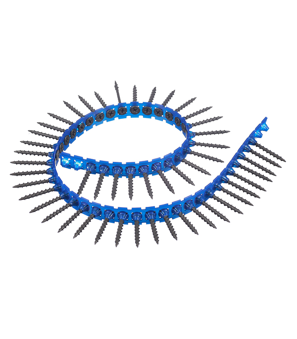 Лента шурупов используется совместно с шуруповертами. Применяя данную ленту, можно избежать срыва шурупа и уменьшить вероятность его падения. Также увеличивается скорость закручивания шурупов, и все манипуляции легко осуществляются при помощи только одной руки. Лента шурупов применяется для крепления гипсокартонных плит к древесине.