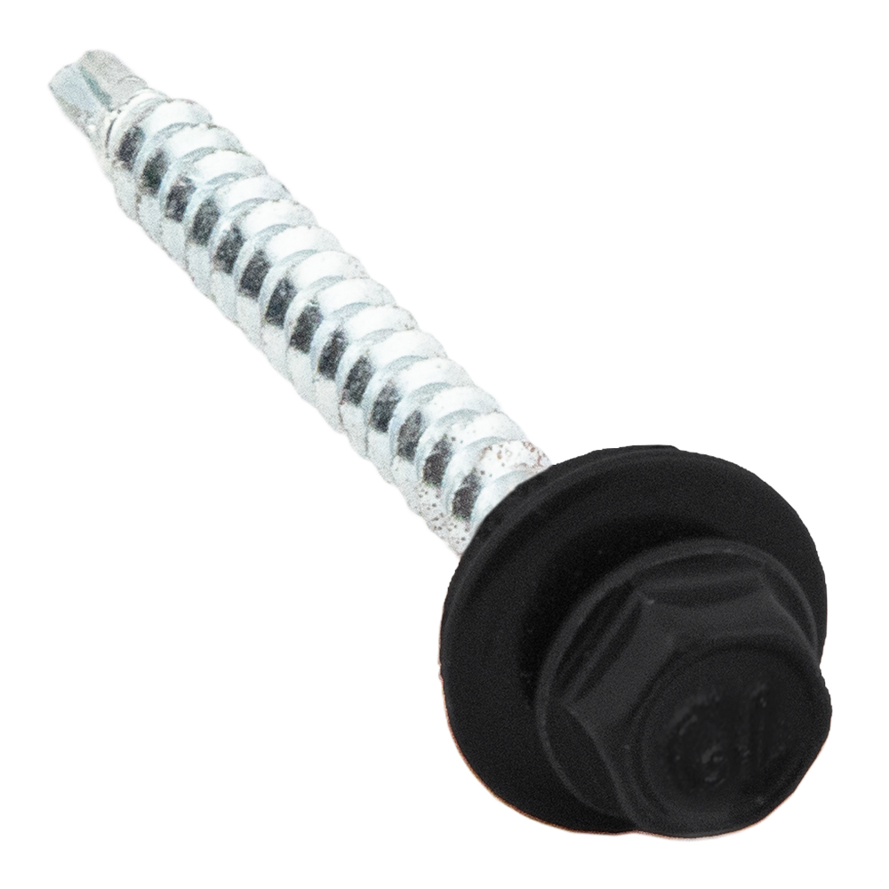 Саморезы кровельные с буром 50х4,8 мм черный янтарь RAL 9005 (250 шт) сталь Тайвань