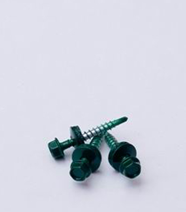 Саморезы с шестигранной головкой, шайбой с резиновой уплотняющей прокладкой и сверлом, на конце, позволяющим осуществлять монтаж без предварительного засверливания.rnПредназначены для крепления листов металлочерепицы и комплектующих, а также профнастила к деревянному каркасу.
