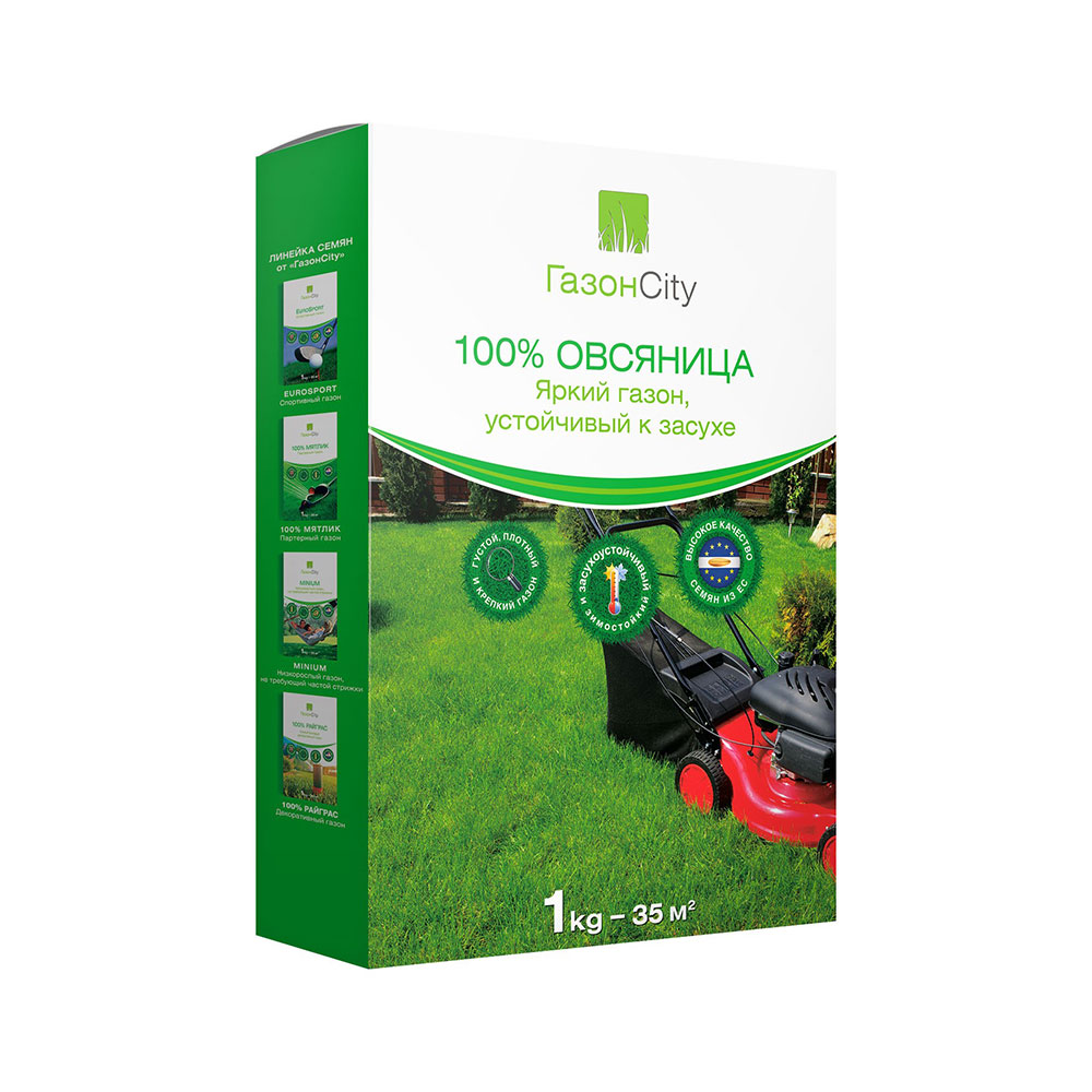 Сорт газонных трав 100% ОВСЯНИЦА предназначен для выращивания в зонах с неустойчивым климатом. Вынослив к перепадам температур и произрастанию в тени. Упаковка 1 кг рассчитана на 35 м².