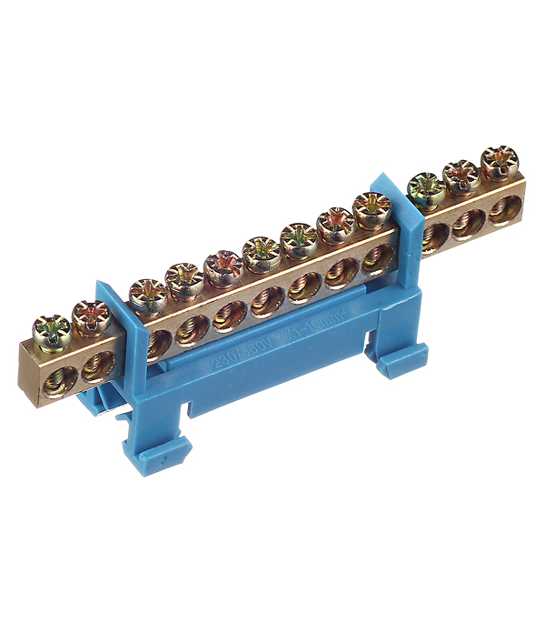 Предназначена для подсоединения нулевого провода и провода заземления при комплектации щитового оборудования, а также для присоединения фазных проводников. Диаметр подключаемого провода 4-6 мм.