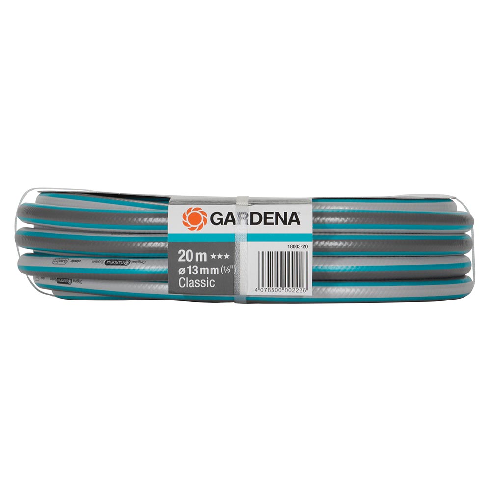 Для полива садового участкаrnДиаметр 13 мм (1/2)rnДлина 20 мrnУстойчивость к перегибам, спутыванию и перекручиваниюrnУстойчивость к давлению и деформации, стабильность формыrnГибкостьrnДавление на разрыв 22 барrnОтсутствие фталатов и тяжелых металловrnУстойчивость к УФ-излучениюrnШланг GARDENA Classic, прекрасно сохраняет свою форму благодаря высококачественному текстильному армированию, отсутсвуют фталаты и тяжелые металлы, и невосприимчив к УФ-излучениюrnШланг GARDENA Classic оптимально сочетается с компонентами Original GARDENA SystemrnИдеально подходит для умеренной интенсивности использования