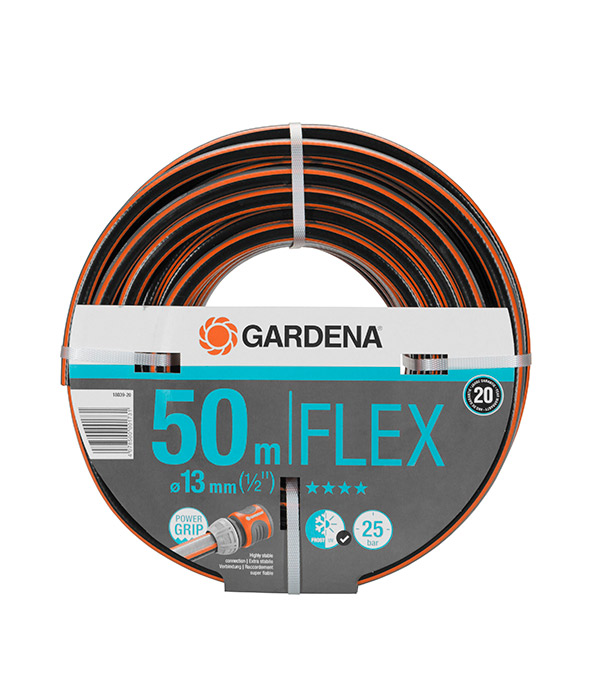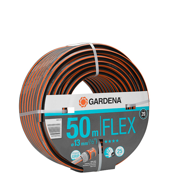 Для полива садового участкаrnДиаметр 13 мм (1/2)rnДлина 50 мrnУстойчивость к перегибам, спутыванию и перекручиваниюrnУстойчивость к давлению и деформации, стабильность формыrnГибкостьrnДавление на разрыв 25 барrnОтсутствие фталатов и тяжелых металлов. Устойчивость к УФ-излучениюrnШланг GARDENA FLEX c ребристым профилем Power Grip для идеального соединения с коннектором Базовой системы поливаrnБлагодаря спиралевидному текстильному армированию, усиленному углеродными волокнами, шланг стал устойчивее к высокому давлению и сохранению формыrnШланг не содержит фталаты и тяжелые металлы, и невосприимчив к УФ-излучениюrnТолстые стенки шланга обеспечивают длительный срок службы и безопасность использования
