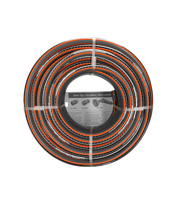Шланг GARDENA HIGHTFLEX с ребристым профилем PowerGrip для идеального соединения с коннекторами Базовой системы полива. Благодаря этому, эксплуатация шланга становится значительно проще. Благодаря спиралевидному текстильному армированию, усиленному углеродными волокнами, шланг не перегибается, не спутывается, не перекручивается. Шланг не содержит фталаты и тяжелые металлы, и невосприимчив к УФ-излучению. Толстые стенки обеспечивают долговечность и надежность.rnБлагодаря спиралевидному текстильному армированию, усиленному углеродными волокнами.rnТолстые стенки шланга и высококачественный материал обеспечивают длитильный срок службы.